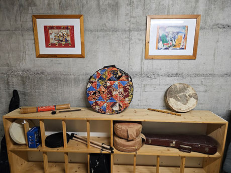 In diesem Raum der Kreativität und Entspannung kannst du dich treiben lassen, deinen Gedanken freien Lauf lassen und gleichzeitig in die Welt der Klänge eintauchen. Hier kannst du dich mit anderen verbinden und gemeinsam etwas Neues erschaffen. Verschiedene Instrumente stehen dir hier zur Verfügung.